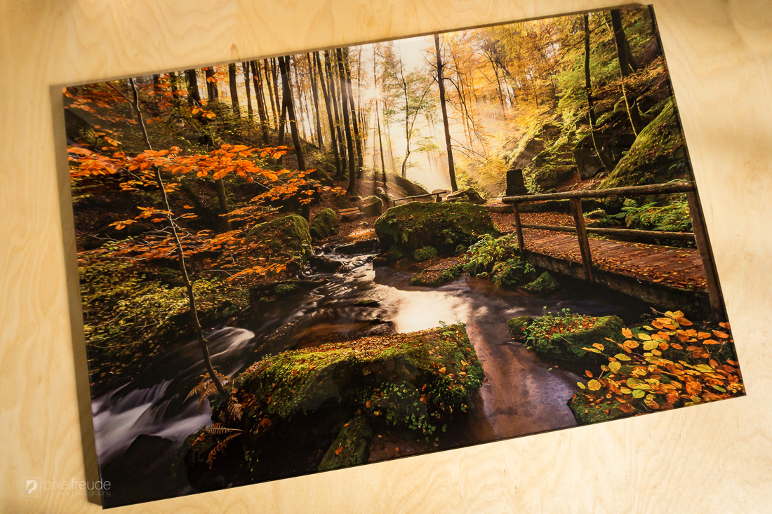 Aus aktuellem Anlass habe ich mich für ein noch sehr frisches Bild entschieden, dass ich erst vor wenigen Wochen im wunderschönen Karlstal bei Trippstadt aufnehmen konnte. Die vielen, intensiven Herbstfarben und das großartige Licht an diesem Morgen waren ausschlaggebend für die Auswahl dieses Bildes! Als Landschaftsfotograf interessiert mich bei der Druckqualität primär immer die naturgetreue Wiedergabe der Farben.