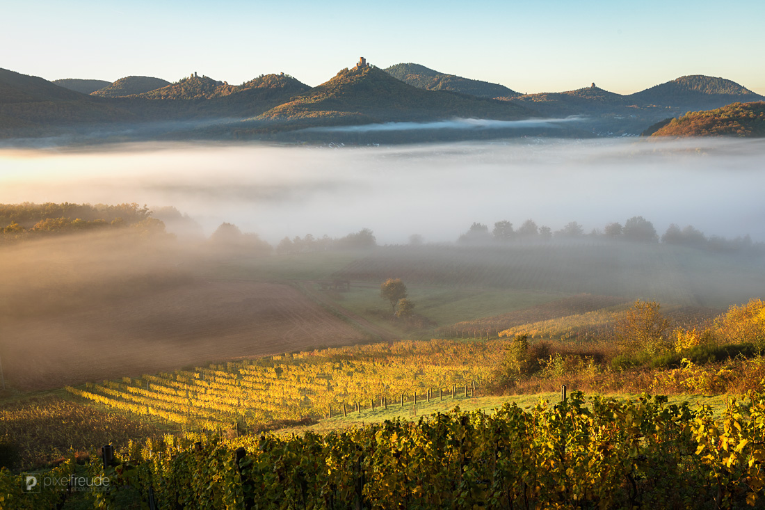 annweilerfarbenfernblickgoldener oktoberherbstnebelpfalzpfälzerpfälzerwaldsonnenaufgangsüdpfalztrifelsurlaubwasgauweinweinberge