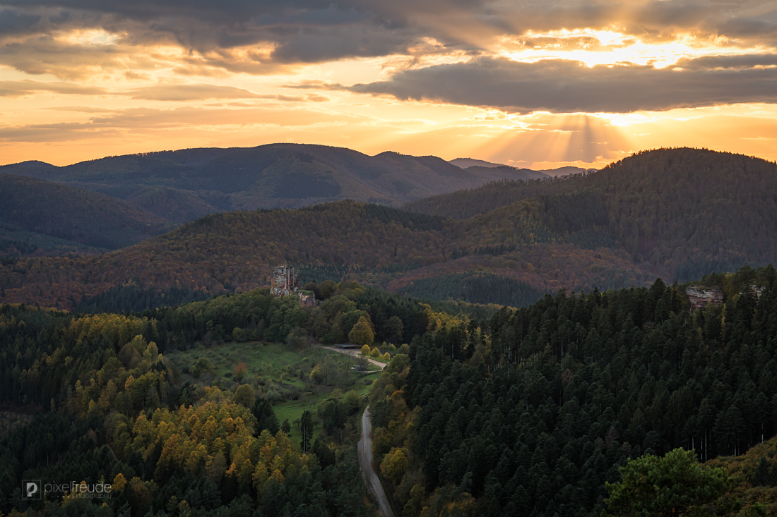 beamsfarbenfernblickfleckensteinherbstkrappenfelslichtfingerpfalzpfälzerpfälzerwaldsonnenstrahlensonnenuntergangsüdpfalzurlaub
