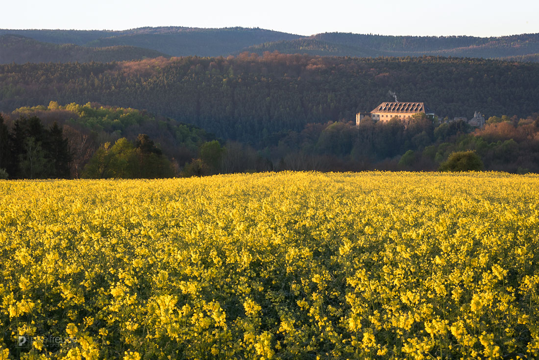 Auch Rapsfelder gehören zum pfälzer Frühling und sind in voller Blüte ein Vergnügen für die Augen.